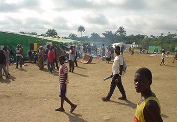 Liberia's recent arrivals at a transit centre in Karnplay, 19 km from the Ivorian border.