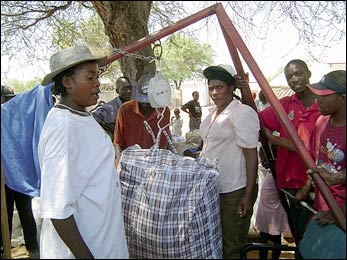 Each Thursday at 3 a.m., the Women's Centre in Osire camp buzzes with activity as refugees board the buses that will bring them to the Windhoek airport, three hours to the south. Mothers search for their ever-escaping children. Young people help the elderly onto the bus. Last farewells are exchanged. Some refugees are nervous about the flight, given that the only planes they have ever known are the ones passing overhead. The older people think about the imminent reunion with friends and relatives left behind and the young ones wonder what Angola will be like.