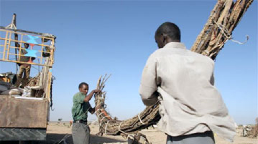In Aisha camp, Somaliland refugees pack tree trunks to build traditional huts back home. Their compatriots from other parts of Somalia, however, may not be going home anytime soon.