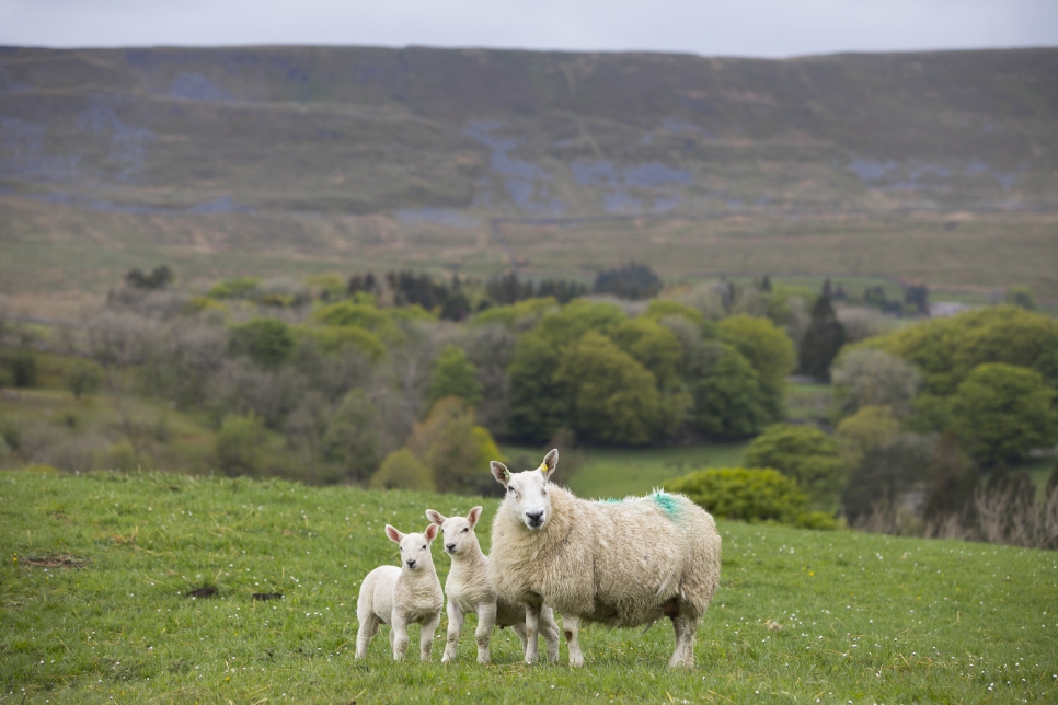 Two lambs and their mother wait to be rounded up by a group of asylum-seekers and refugees as part of a country visit project organised by the Yorkshire Dales Millennium Trust. This helps the visitors experience a fresh side of life in the United Kingdom.