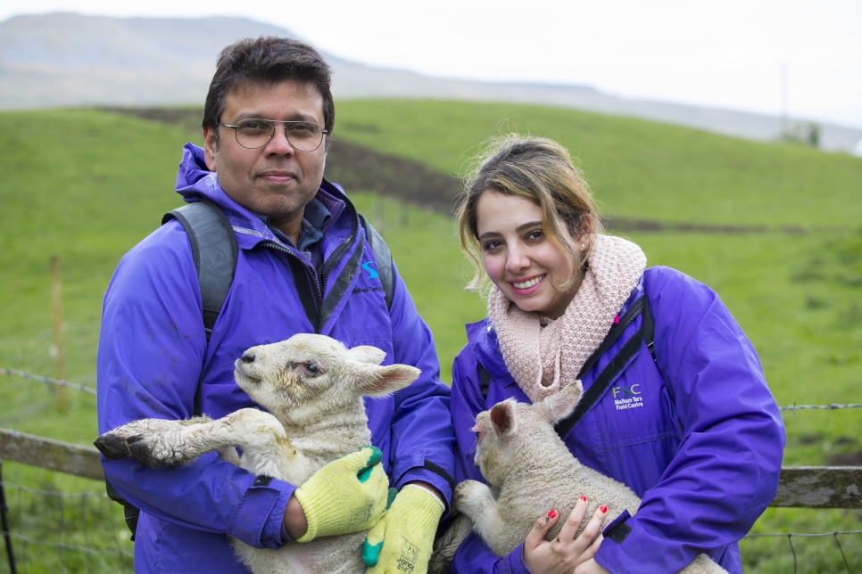 Saad Hashmi is in a group of refugees and asylum-seekers helping to tag lambs on Rodney Beresford's farm in the Yorkshire Dales, as part of a project run by the Yorkshire Dales Millennium Trust.