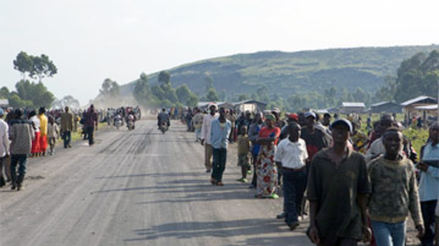 Up to 45,000 internally displaced people (IDPs) left two sites in Kibati and headed south to the North Kivu capital, Goma, some 10 kilometres away. The IDPs, including 30,000 who had arrived in Kibati a day earlier, fled amid fears that fierce fighting between government troops and rebel fighters loyal to Laurent Nkunda was approaching the city.