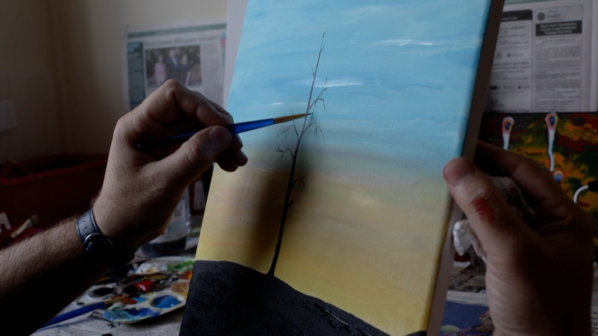 A Kurdish refugee from North East Syria, Mousa, 52, has been painting his voyage to safety. Resettled to Belfast, Northern Ireland, in August 2016, Mousa has found a haven for his family and his art.