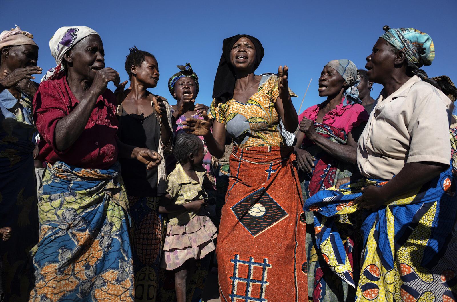 The sun is setting at Lukwangulo camp in Katanga, Democratic Republic of Congo, as women return from the fields and wells. On their lips is a traditional and joyful song. On their heads are cassava leaves. Tonight, they will sleep soundly – far from the sound of the bullets.
