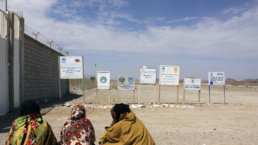 Refugees outside Kharaz camp in Yemen, a country from where 55 Eritrean deserters were recently resettled to Sweden.