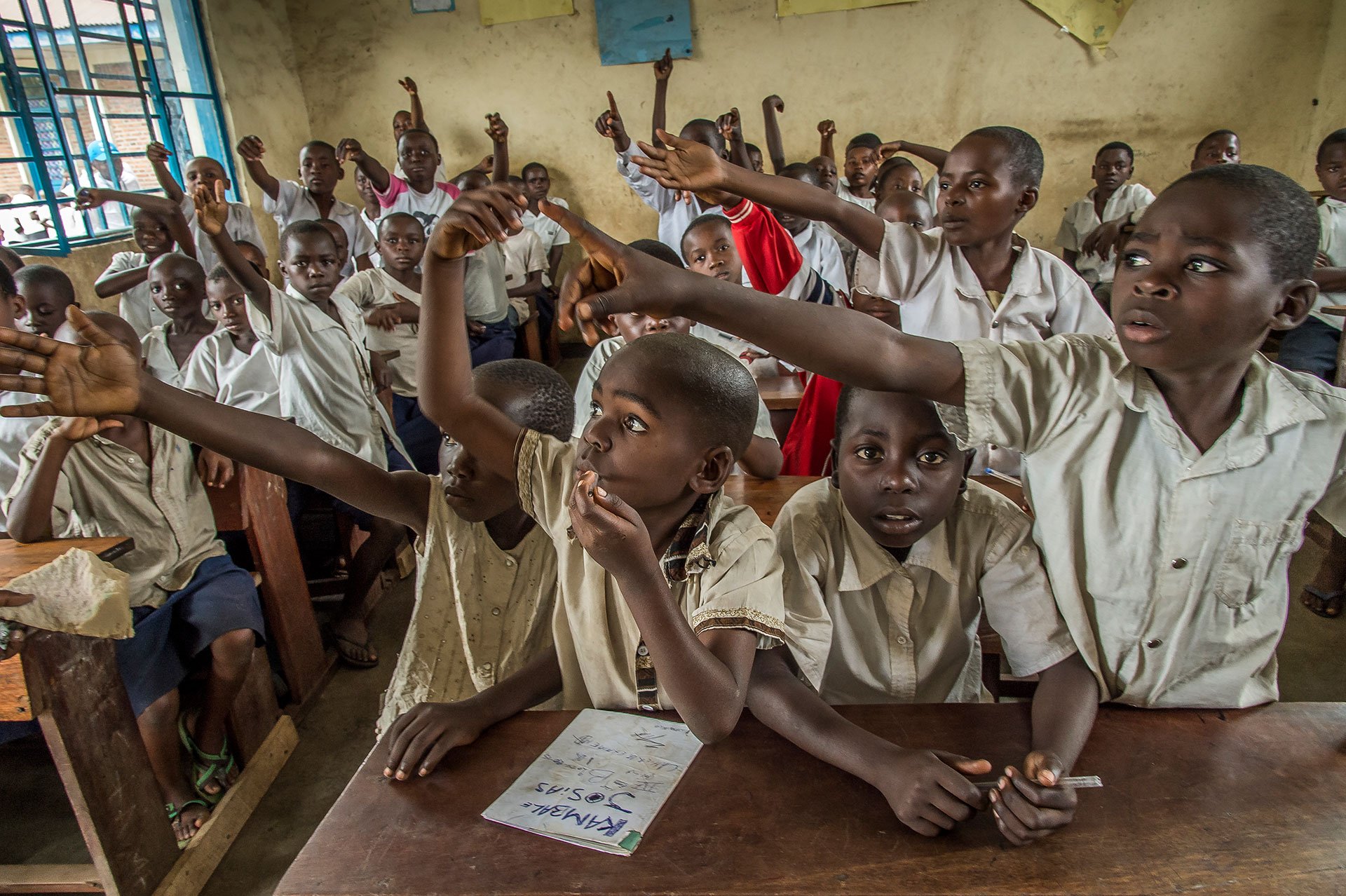 Some parents evicted from the settlement do not want to withdraw their children from the local school in Rutshuru. In this classroom, a third of the students are from displaced families.