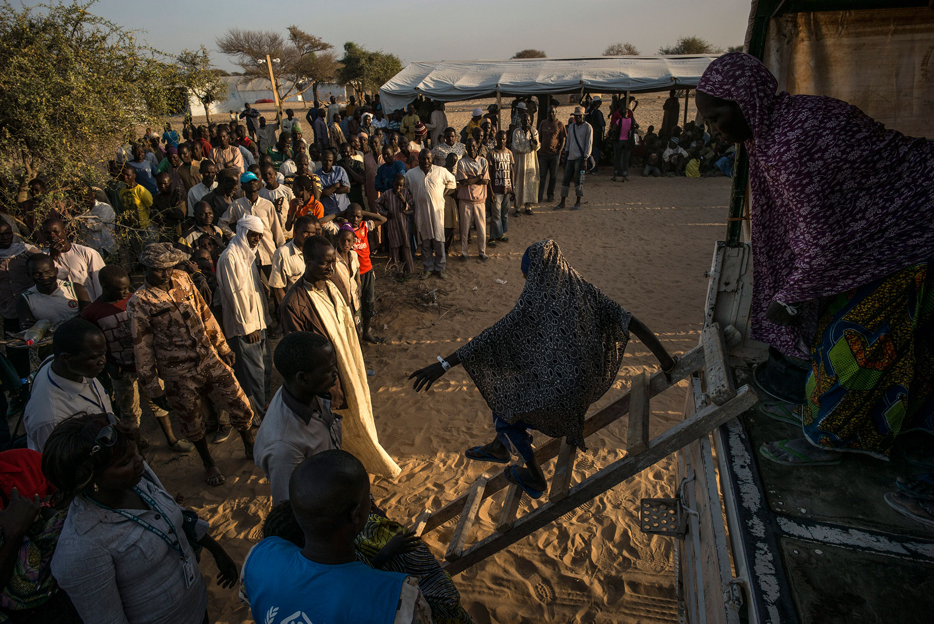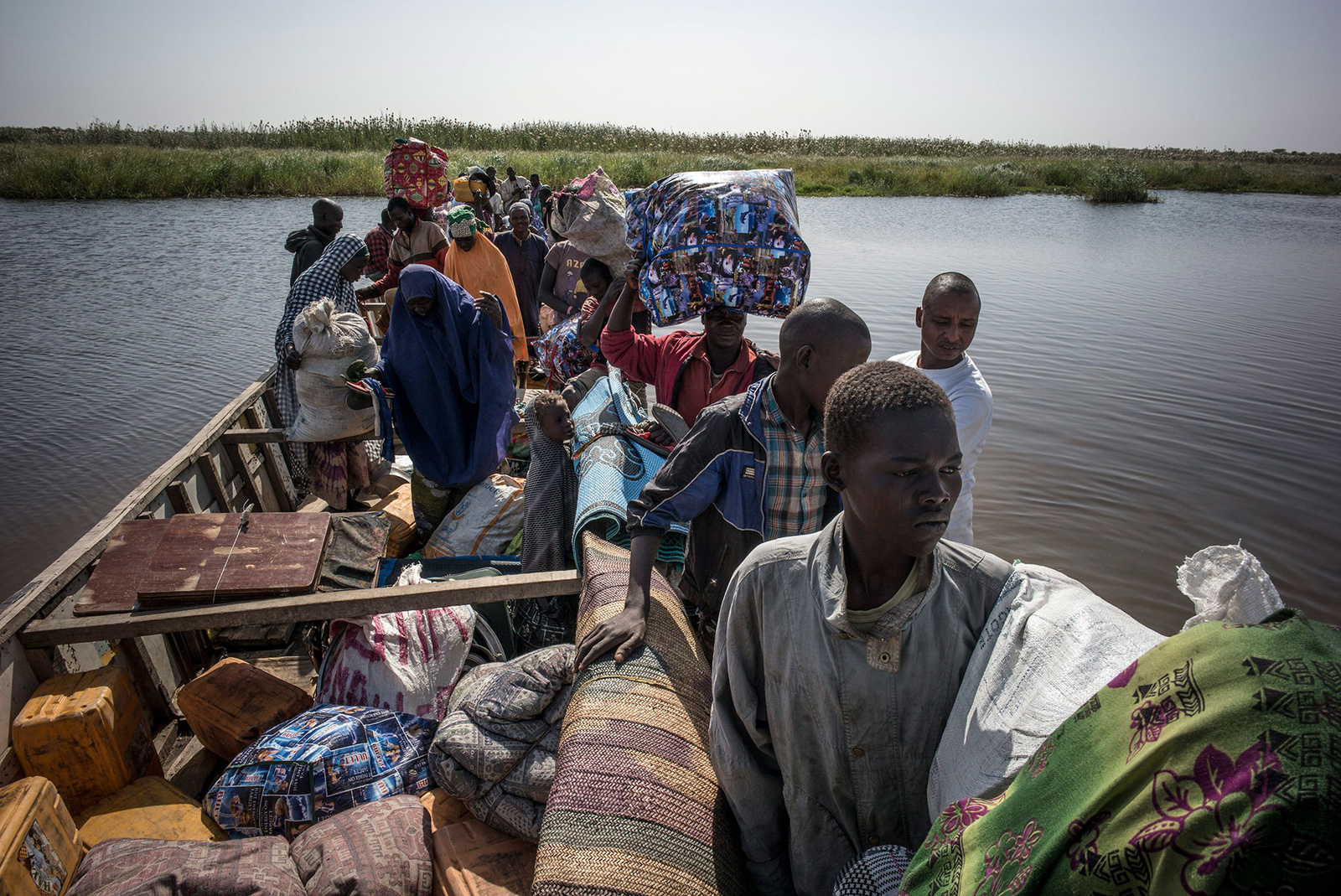 This boat is the last chartered by Chadian authorities and UNHCR to collect some 7,000 survivors scattered over countless islets, patches of sand that appear to have crumbled away from the mainland, much like icebergs released from a glacier. Conditions there are precarious, and many refugees only survive with the help of a few local residents. Their relocation to Dar-es-Salam, a site planted in an arid scrubland 75 kilometres from the Nigerian border, is an urgent, but challenging, humanitarian priority.