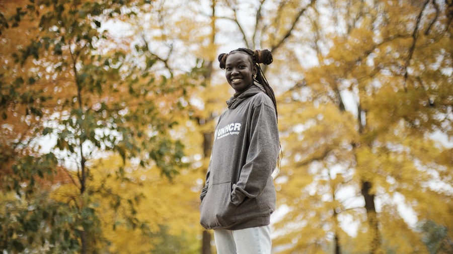 Newly appointed UNHCR Goodwill Ambassador Mary Maker pictured in October 2022 in Minnesota, USA, where she is pursuing a degree in Theatre and Literature.