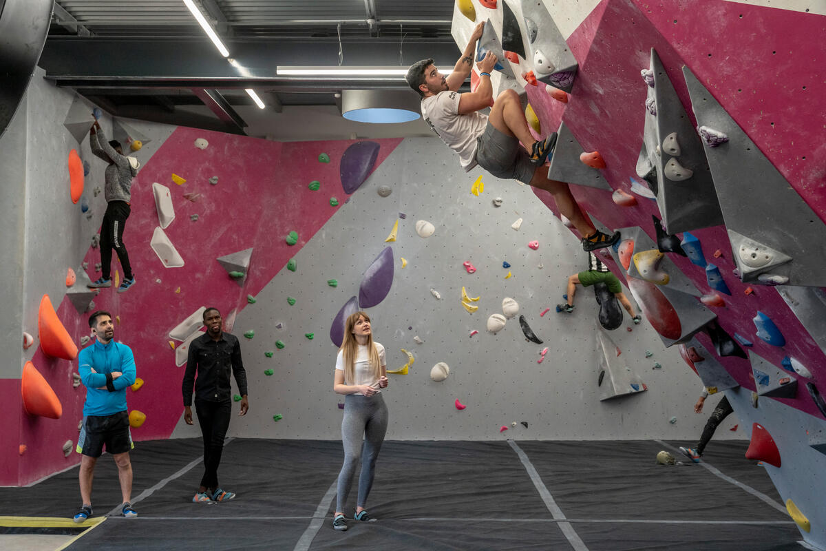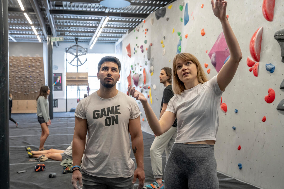 Teamwork is vital. Boulder buddies such as Olivia and Amir help one another solve climbing problems, but they also learn from each other in different ways: Olivia says she has met people from different countries and learned about different cultures, all while improving her climbing; Amir says he has found an inclusive and welcoming community to belong to.