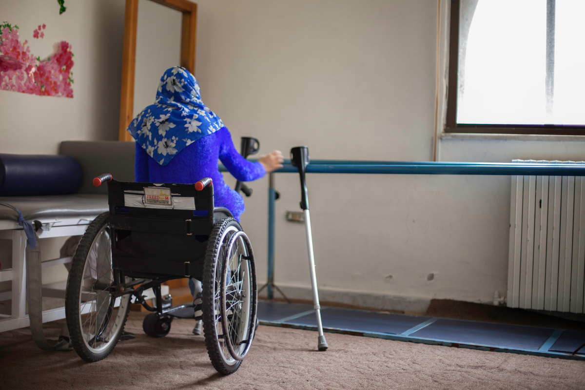 Physiotherapy sessions in Jordan help Wisam rebuild her muscles.