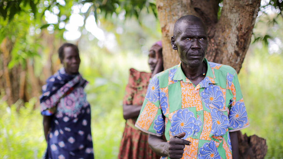 Bernard, 50, is blind and lives now under a mango tree in the bush some 15 km east of Maridi after fleeing ethnic violence in his home town of Maridi. He told UNHCR staff that he ran for his life with the help of his wife and son.
