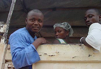 In Sierra Leone, the convoy was handed over to the UNHCR field office in Zimmi. Led by UNHCR vehicles, they continued over bumpy, windy roads further into country. Two hours later the dusty and shaken passengers arrived, full of vigour, for their overnight stop in Zimmi - they were en route home.