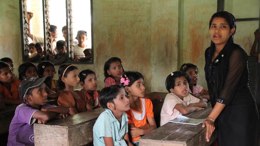 PHAUNG DAW PYIN, Myanmar, May 11 (UNHCR) - With her quiet voice and demure manner, 21-year-old Rozeya is not an obvious pioneer. But over a large swathe of Myanmar's northern Rakhine state, this young Muslim woman's steely determination to overcome obstacles is convincing many fathers and religious leaders of the importance of educating girls, and has turned her into a role model for teenage girls.