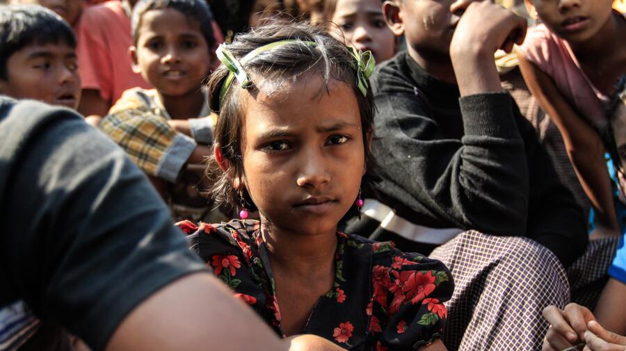 A young girl in Myanmar's Rakhine State. UNHCR has appealed for measures to prevent more violence following the latest clashes with IDPs.