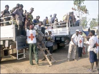 The International Committee of the Red Cross helping UNHCR to move Sierra Leonean refugees away from the border in Guinea.