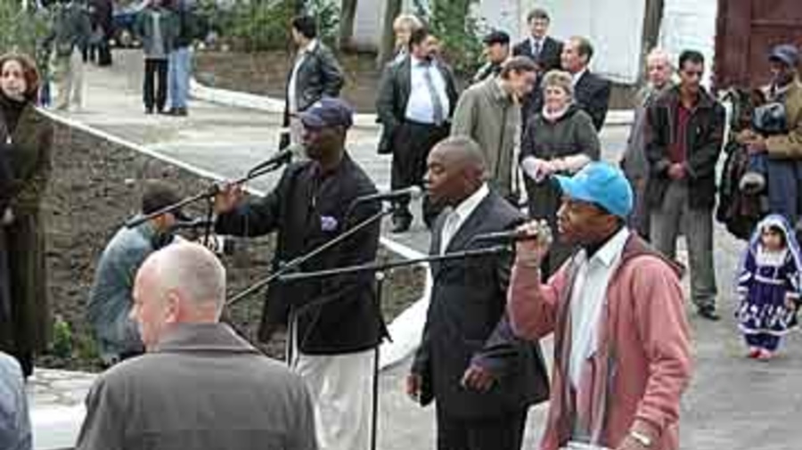 African refugees sing at a temporary accommodation centre for asylum seekers in Odessa. There have been a series of attacks against foreigners in Ukraine this year.