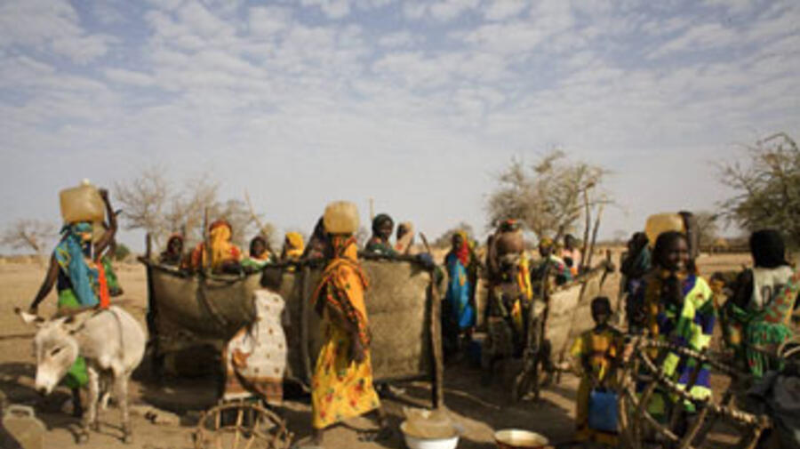 Displaced people queue for water in a camp in eastern Chad. The UN plans to send a multidimensional mission to Chad and Central African Republic that will help strengthen security in the region.