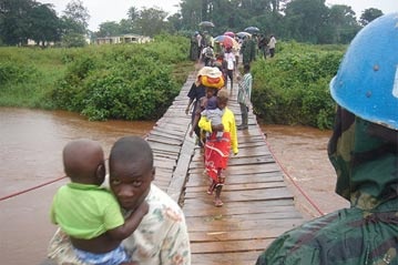 The Liberian refugees cross the Nihon River separating Côte d'Ivoire and their homeland.