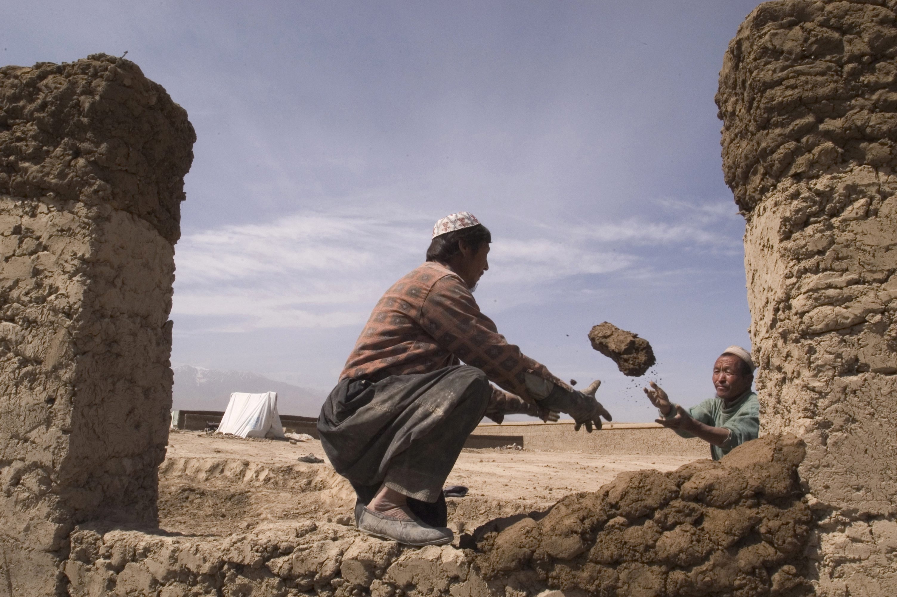 Under its house-building programme, UNHCR provides tool kits and construction items like beams and window frames, while beneficiaries contribute most of the labour.