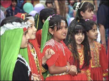 Afghan refugee girls waiting for their turn to perform a dance at the Family Park.