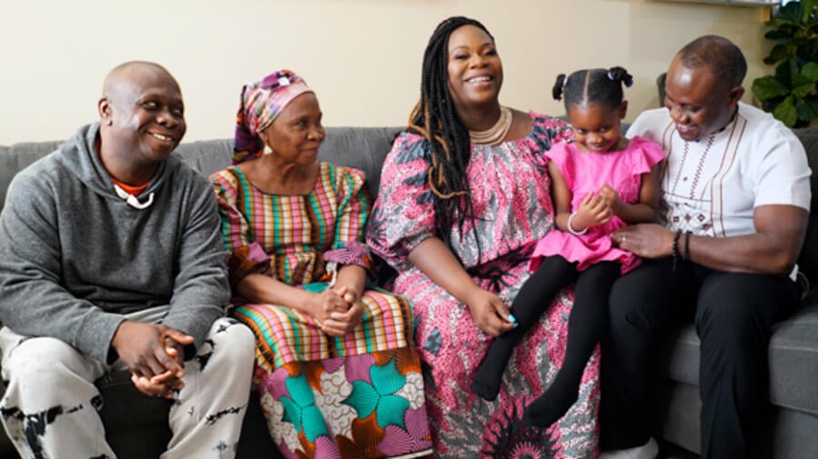 Pictured with her family, a woman who fled her home as a child now fights for refugee rights in the US state of Delaware.