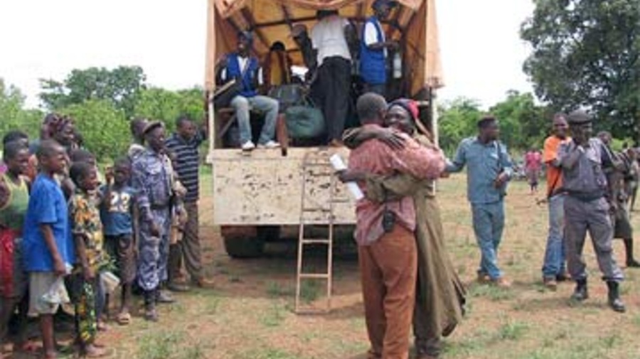 Friends Reunited: A group of Sudanese refugees arrive home with UNHCR help. Sweden and Switzerland have donated trucks to help with the repatriation operation.