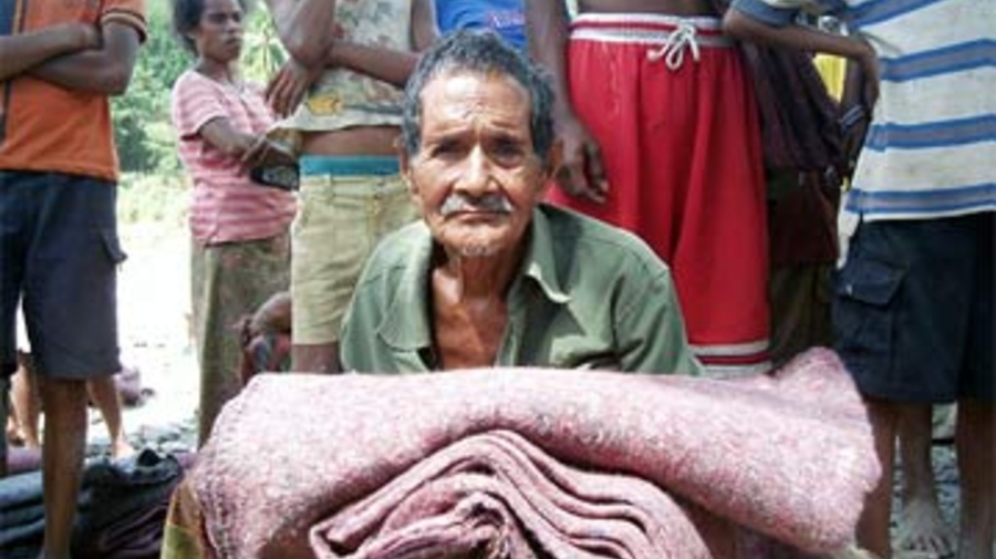 MOTO KIIK, Timor-Leste, July 5 (UNHCR) - Moniz Alves will be a bit warmer tonight after receiving a blanket from UNHCR at a makeshift camp near this village in foothills east of the Timor-Leste capital Dili, but the 81-year-old is still too scared to return home.
