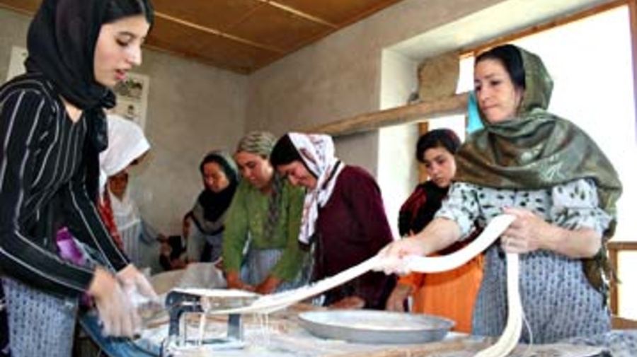 Returnee women make pasta in Mazar-i-Sharif, northern Afghanistan.
