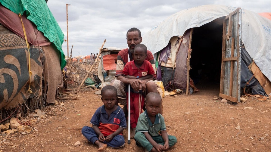 Issack Hassan Issack struggles to find clean water and food for his children at a displacement site in Somalia, amid a drought that has displaced hundreds of thousands both within and outside the country.