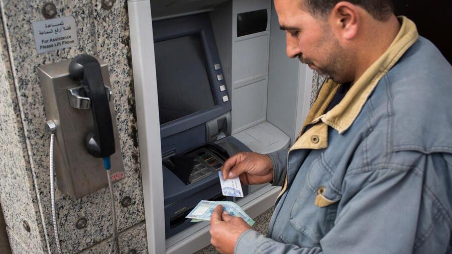 Syrian refugee Suhail Qamber uses a card provided by UNHCR to withdraw cash from an ATM machine in Saida, Lebanon in this 2014 file photo.