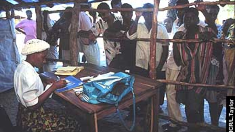 Registration of new arrivals at Nangweshi camp in Zambia.