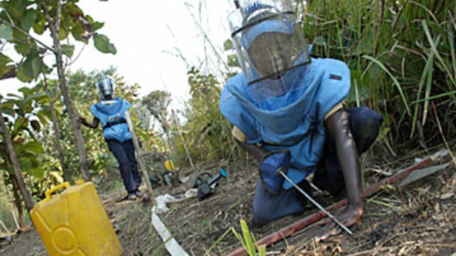 Women mine clearers at work near Yei in South Sudan. Holland's National Public Lottery has donated funds to UNHCR that will be used in part to fund mine clearance projects in southern Sudan.