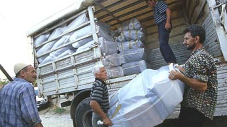 Returnees unloading return kits in Tetovo, former Yugoslav Republic of Macedonia. UNHCR has helped 6,000 returnee families rebuild their homes.