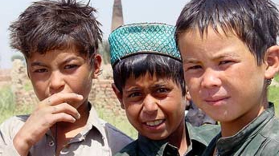Ethnic-Uzbek Afghan children in Hyderabad, near the brick kiln where they work.