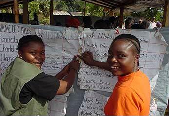 Liberia's recent arrivals at a transit centre in Karnplay, 19 km from the Ivorian border.