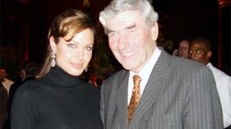 High Commissioner Ruud Lubbers with UNHCR Goodwill Ambassador Angelina Jolie at the charity premiere of "Beyond Borders" in New York.