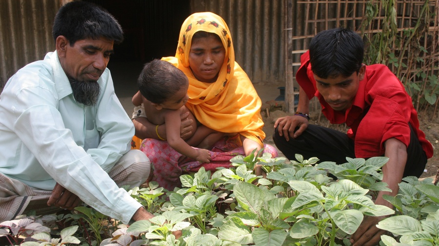 "If the people at UNHCR had not helped my baby, my child would have died," says mother Mabia Khatun, surrounded by her six older children and her husband. The family fled Myanmar in 1991 after repeatedly being recruited as forced labourers.