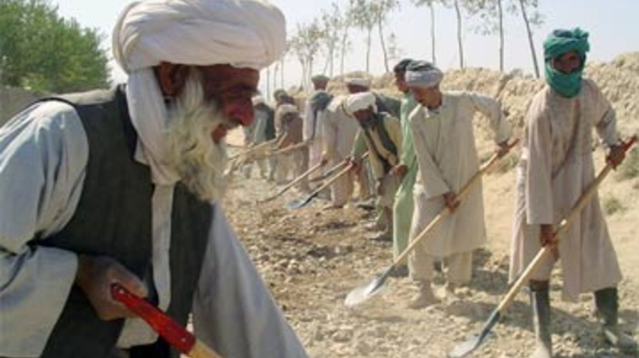 The men who participated in the Pashton Zarghon cash-for-work project were selected by a local council, or shura. Forty-five men worked for six days each before making way for the next group. "It's difficult at times to convince the men that they must give others a chance to work," says Mohammed Nader, the foreman on the project. "Each man would like to do this type of work for as long as possible." Nader speaks from experience. Without farmland of his own, he has earned a reputation as a traveller, as a result of his long absences working away from home.