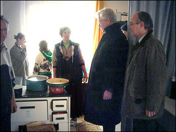German Ambassador Arne Freiherr von Kittlitz und Ottendorf and UNHCR Representative Udo Janz (right) meet the grateful recipients of a stove in Sokolac in January 2005.