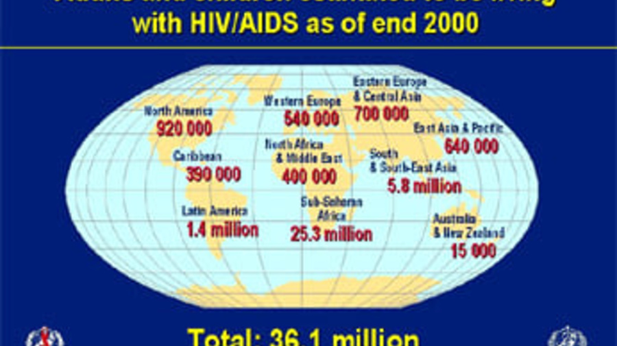 It is estimated that more than 36 million people around the world today are living with HIV/AIDS. Some 25 million of them, or more than 65 percent, are in sub-Saharan Africa, which is home to 30 percent of the world's 12.1 million refugees.