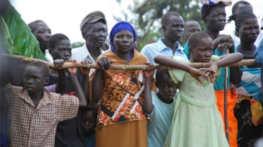 Sudanese refugees attend a meeting with UNHCR, Sudanese and Ugandan officials in Kiryandongo refugee settlement. They could soon be going home.