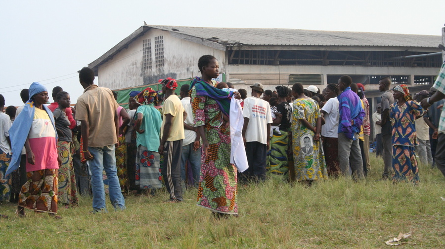 Refugees from Equateur province wait for aid at a site near Betou in the Republic of Congo.