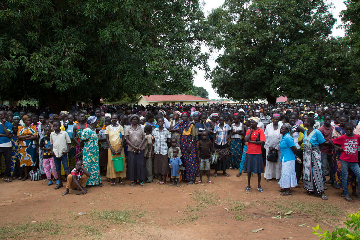 Thousands of internally displaced people gather at Emmanuel Church Compound in Yei, South Sudan, during a high-level mission from Juba in September 2016.