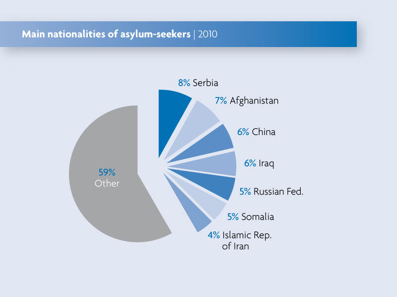 Serbia (including Kosovo) was the main source of asylum-seekers last year. It was responsible for 28,900 applications, an increase of 54 per cent compared to the previous year, when the country ranked sixth. Interestingly, the number of asylum applications in 2010 was comparable to 2001, soon after the Kosovo crisis.