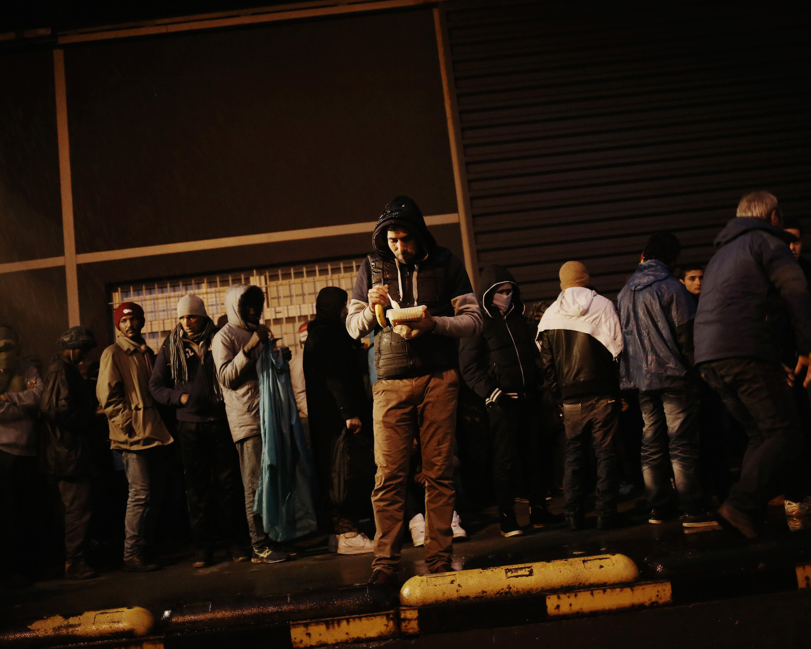 When I meet him one evening, down at the loading bay of a factory where he sleeps in Calais, France, he looks exhausted. His dark, curly hair is matted with rain and he gazes at me with gentle, brown eyes through the downpour. "All of us Syrians are in despair," he says. "We sleep on the streets. I have some money left, which I share, but I just want to get to Britain."
