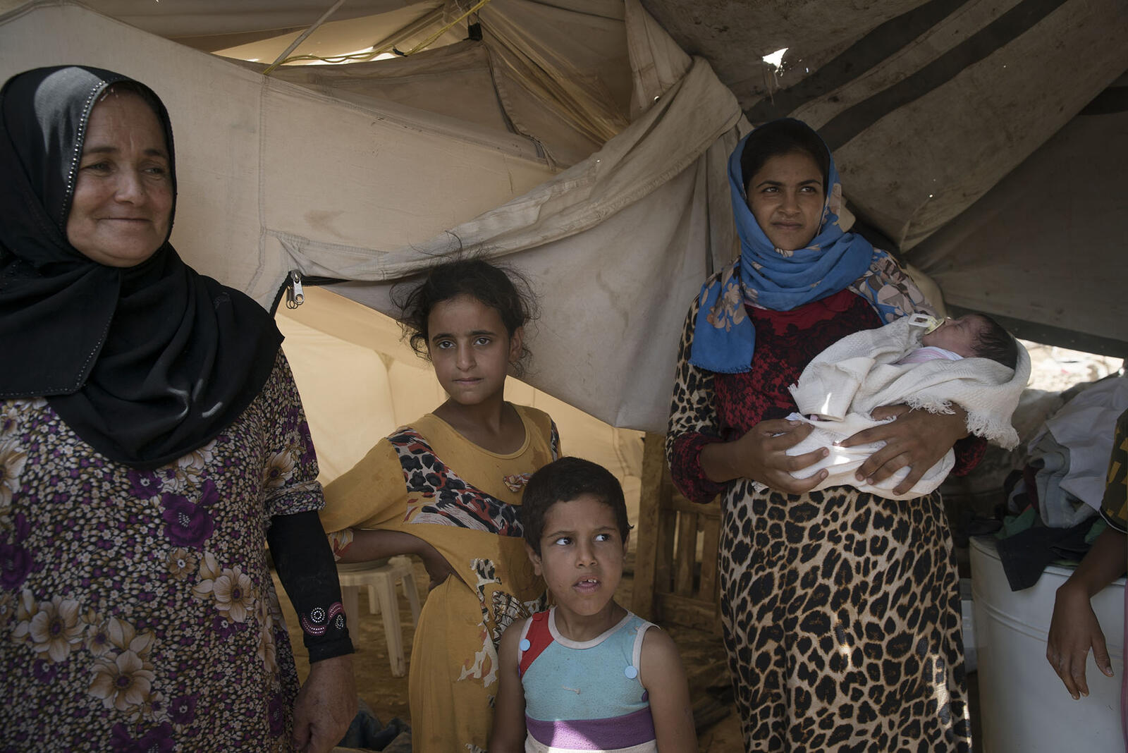 "They allowed us to cross, but we have nowhere to go," Nahla said, surrounded by some of her nine children. The camp they are sheltering in is made up of no more than 50 tents and four toilets. Families say it has been more than a week since their last food delivery, and they lack access to even basic health care services. Nahla's daughter-in-law, Abeer, 17 years old, gave birth to her first child while living in this camp and had to travel back into Anbar to reach a functioning hospital.