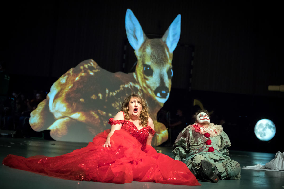 Koutaiba Al Rahmoon tap-dances across the stage in cut-off trousers and a kitsch Christmas jumper. The Syrian drama student had never performed before coming to Europe. Four years later, he’s perfectly at home in the wacky world of modern German opera.