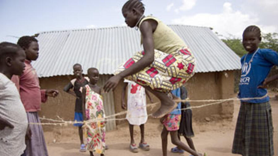 UNHCR Against Violence. Girls in Kenya's Kakuma camp play in an enclosed area that provides a haven for women and children who need protection from violence, sexual or physical abuse, forced marriage or domestic violence.