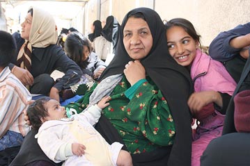 Eight-year-old Massudeh (in pink) knows nothing about Kabul but is eager to return. She waits to leave Iran from Khavaran Departure Centre outside Tehran.