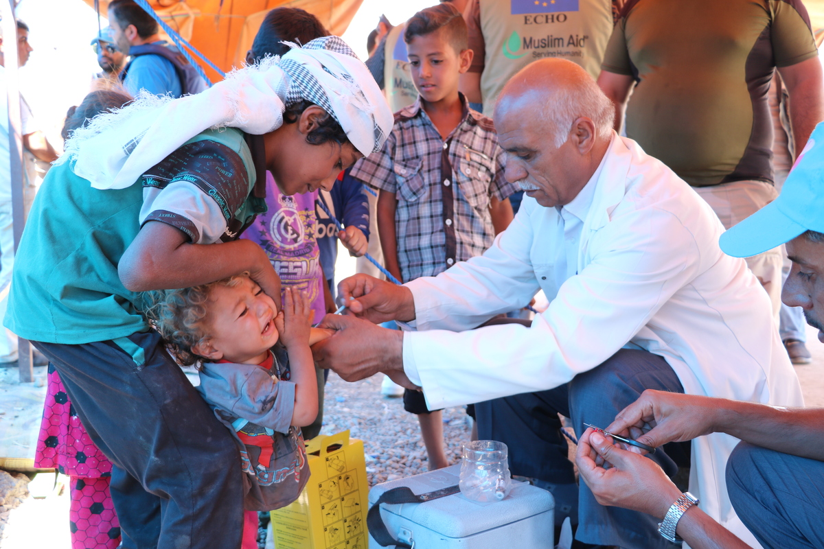 New arrivals are being vaccinated at Badoush mustering point in Iraq